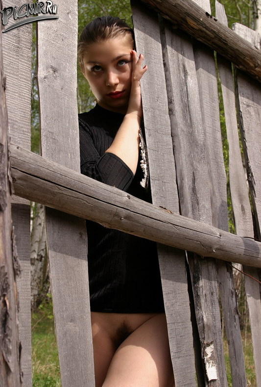 Не один мужчина не устоит перед прелестями этой красотули за ветхим забором соблазнительно позирующей!