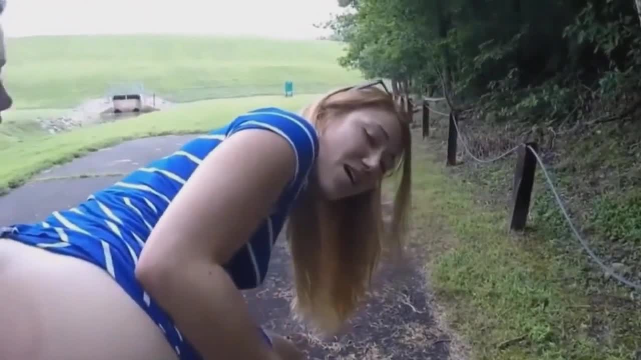 девушка трахает двумя пальцами свою подругу в пизду на заборе, рядом с дорогой.