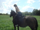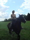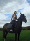 Она очень хорошо может управляться с конём. Она хорошо катается верхом.