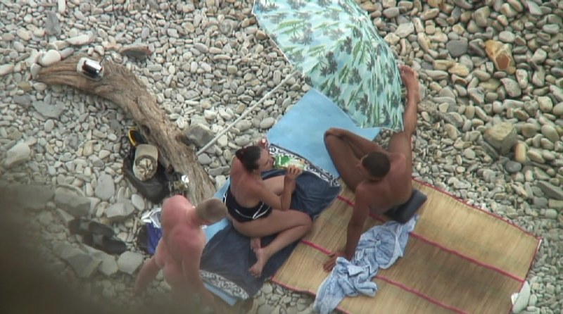Продолжение публикации из серии, в которых совмещены две темы - секс в формате МЖМ и подглядывание на нудистских пляжах. По названию понятно, что начало этих приключений - в другой публикации. Со 100% гарантией утверждать невозможно, но очень похоже, что муж дал жене возможность поиграть с ещё одним членом...разнообразить сексуальную жизнь на отдыхе)