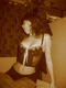 Ух, какая красивая девушка, да еще в красивом нижнем белье. У девушки очень красивая милая улыбка, приятное лицо, красивые волосы темного цвета, которые оформлены в классную прическу.
