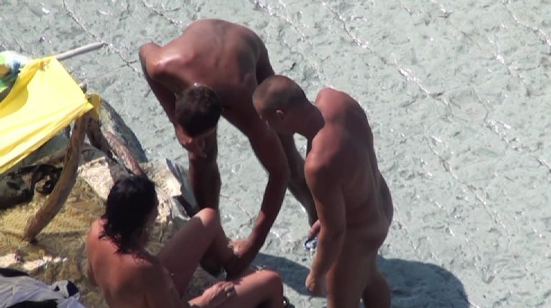 Дикий пляж нудистов - секс в формате МЖМ - 3 Часть третья