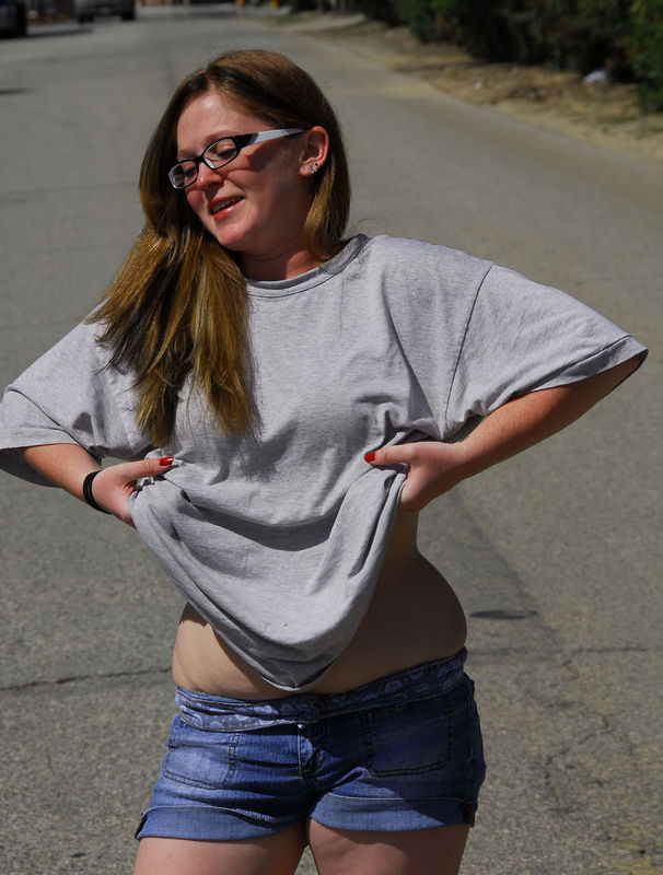 Рыжая скромняшка показала всем свои прелести.