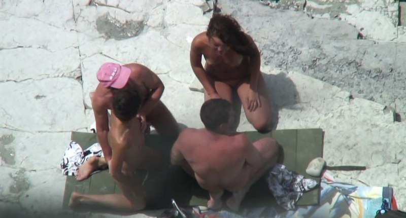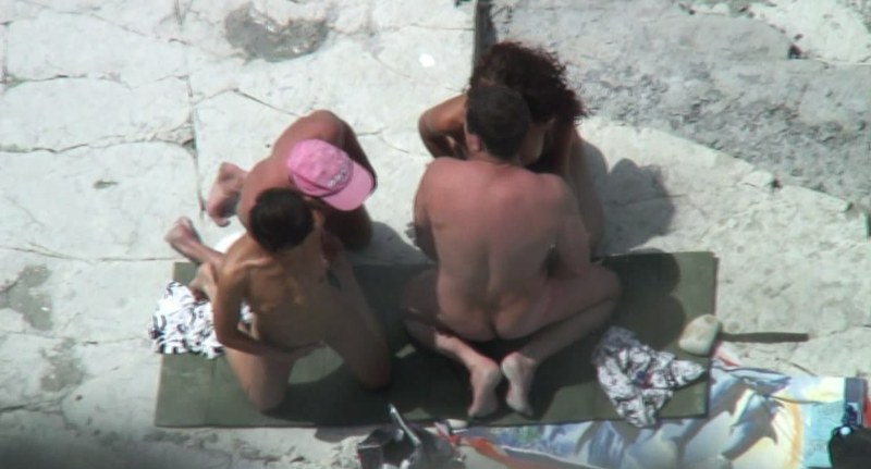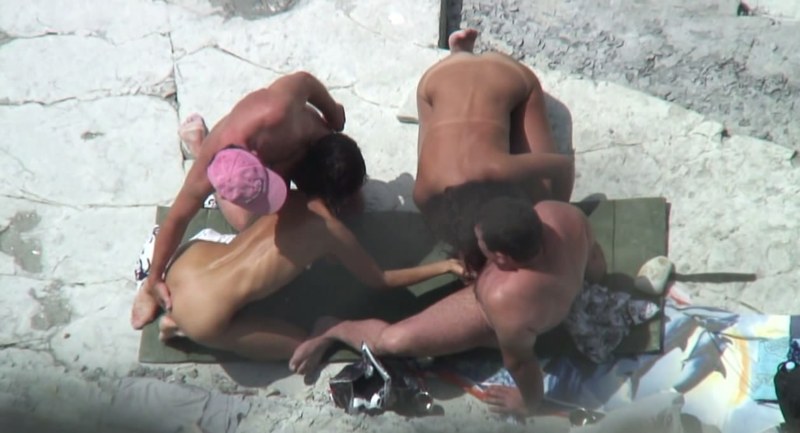 Две пары на некотором расстоянии друг от друга...ласкаются, инициатор - один из парней подводит свою девушку ко второй паре и очевидно спрашивает разрешения расположится рядом. Далее события разворачиваются вполне понятным образом... Только вот одна девушка не захотела ласкать соседа...