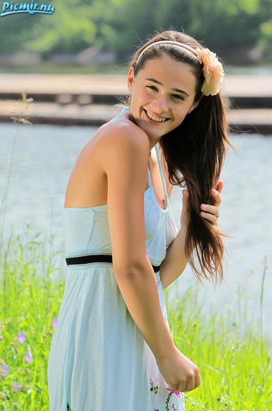 Очаровательная милочка томно позирующая обнажённой у речки!