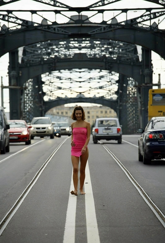 Шикарная Милашка на мосту Петра Великого ооочень сексуально смотрится.