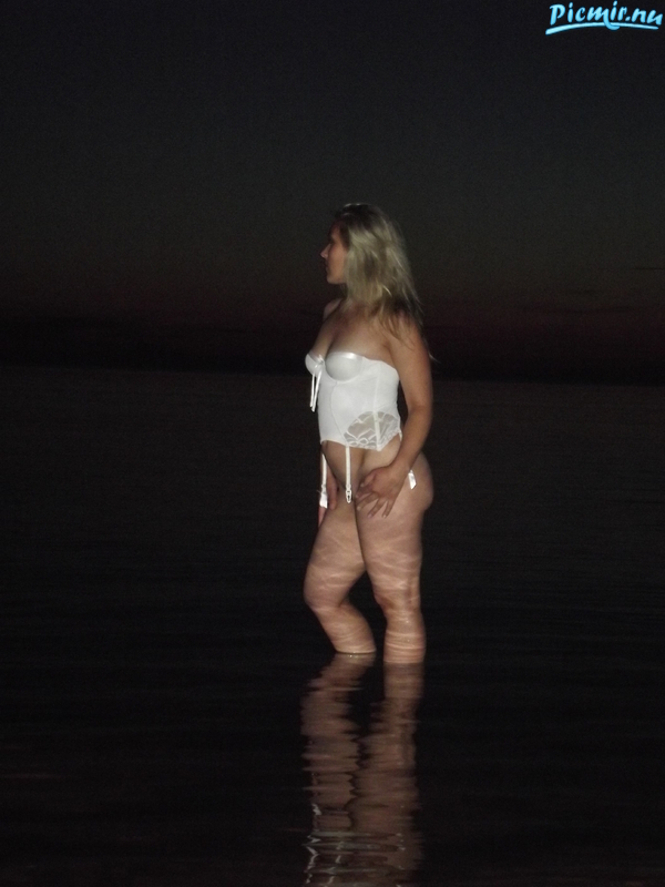 В ночи сверкнула белым-корсетом. Зато прихватило с собой на пляж чёрного дружка. А муженёк, наверное, в концовке решил её поддержать.