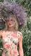 блондинки с венком на голове позирует на фоне пляжа и около кустиков на теле есть рисунки