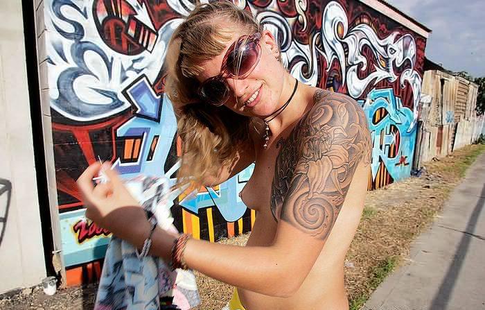 Классная татушка только портит дамочку на роликах!