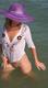 позирует на берегу и возле воды от скромности скрывает своё личко
