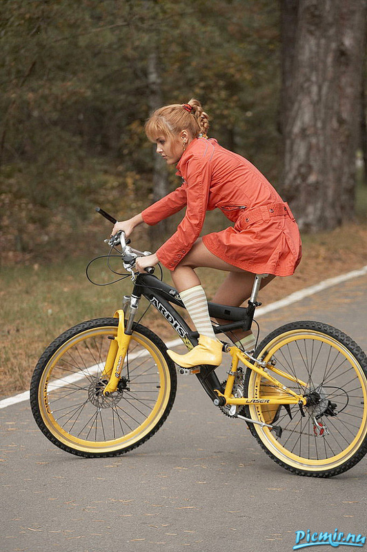 Обнажённой сия молоденькая игривая велосипедистка особенно сексуально привлекательна!