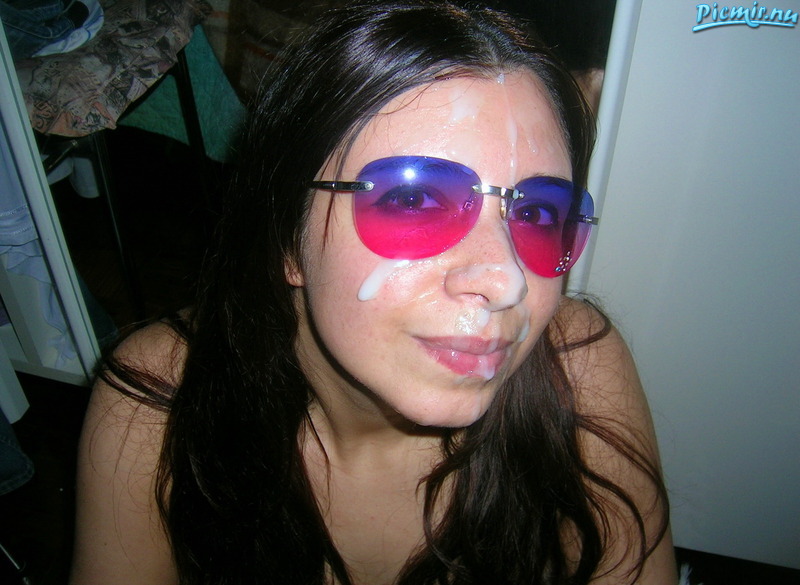 Круто кайфует девка от спермы спущенной ей налицо!