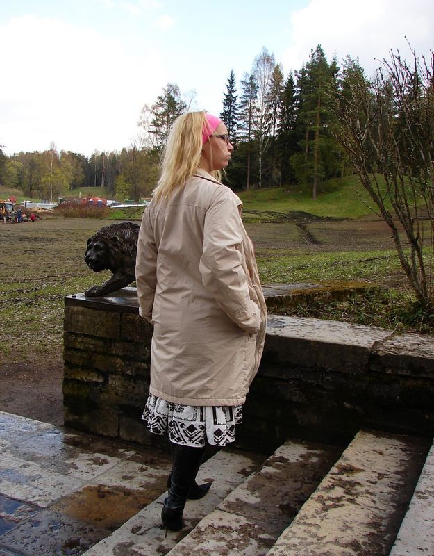 И не холодно ей там на сыром сидеть? И одежду не боится запачкать?