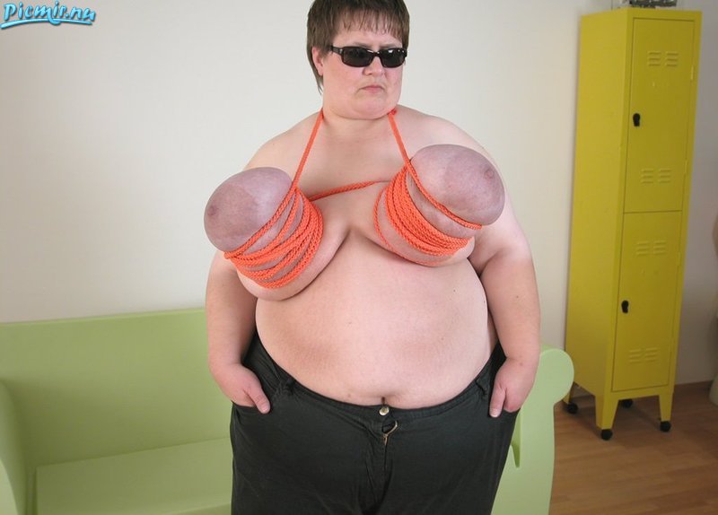 Хороша толстуха с мега сиськами. Любит бондаж