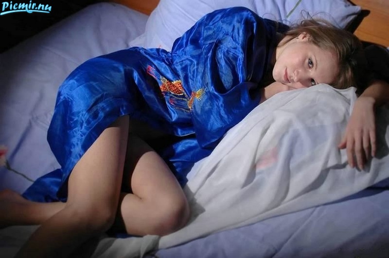 Цвет халатика очень ей идет, тело безупречное,фото потрясающие
