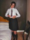 Девушка в форме школьницы шалит с собою