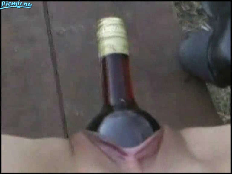 Ребятки выбрались на природу прогуляться, захватили бутылочку вина и прежде чем её выпить, девочка всунула бутылку себе в пизду и так решила прогуляться. Забавно однако получилось...