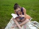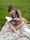 Интересно что она читает? :-) Коленки ободраны. Стоя в коленного локтевой позиции приятно читать :-)