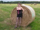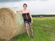 Прекрасная,милая и обворожительная дама в чулках и очёчках позирует дома,в гараже и на сеновале показывая свою сочную киску.