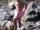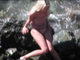 Прекрасна сия блонди позирующая на морских камнях полуобнажённой!