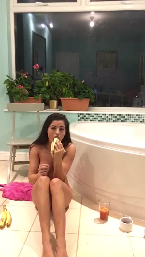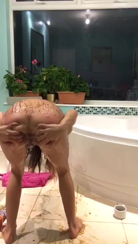 странное фетиш видео девушки с бананами и каким то сиропом, в конце она попыталась покакать, но не смогла и только поссала