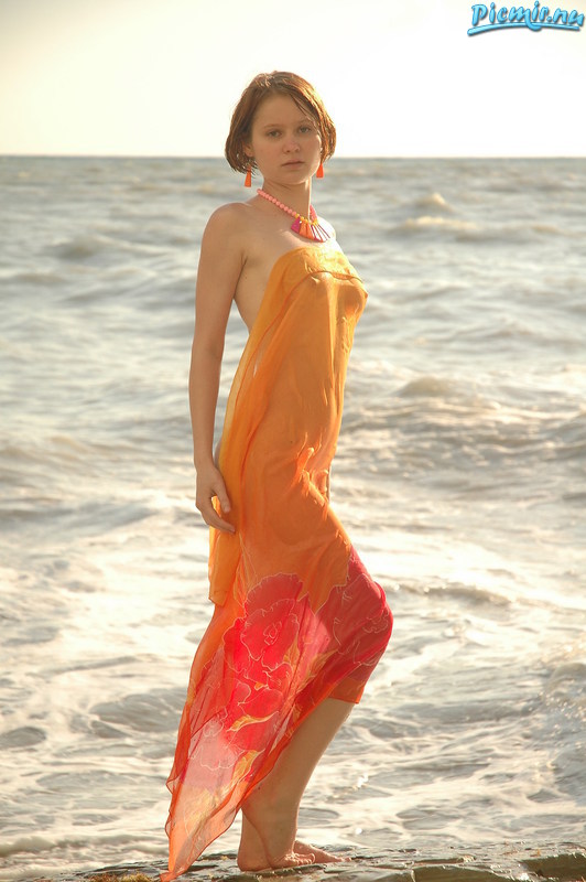 Бесподобно позирует сия прелесть в парео на морском берегу!