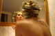 Домашние фотки. Сексуальная девочка. Бигуди, татушка на спине и йух с пирсингом.
