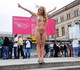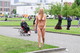 Блондинка просто гуляет по городу, привлекая к себе внимание изящным обнажённым телом.