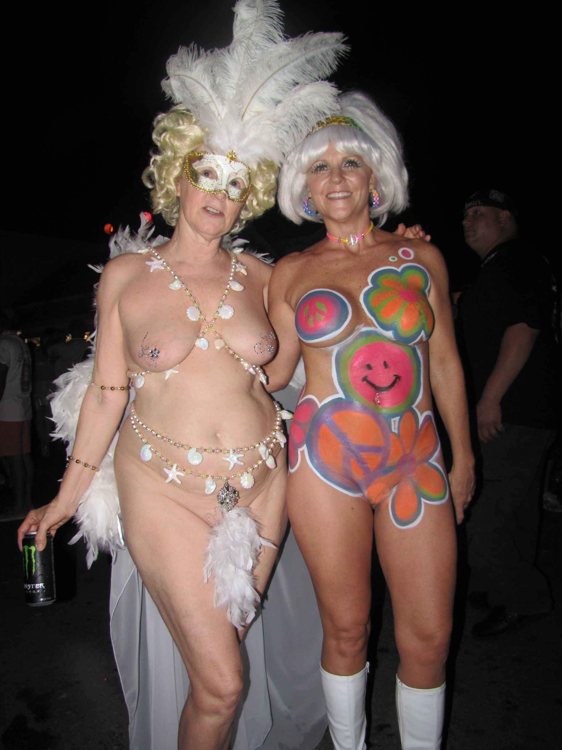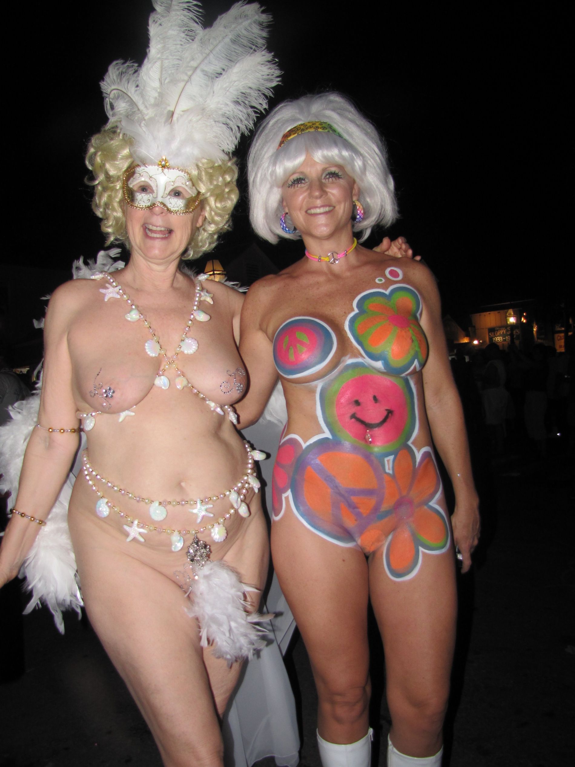 взрослая милашка развлекается на карнавале в обществе себе подобных.
