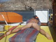 милашка принимает солнечные ванны на палубе яхты демонстрируя себя и свою попку и и киску на фотокамеру.