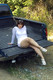 Красивая женщина с большой попой залезла на машину и сделала несколько фоток