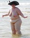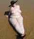 Крупная дама позирует голая на море