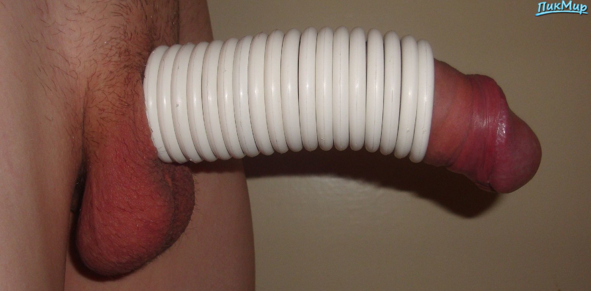 Надел кольца и резинки на член, для новых ощущений.