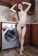 Сандра показывает свой кустик после обнажения на кухне