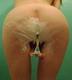 Стройная девушка с маленькой грудью показывает свои развитые половые губы и необычайно крупный клитор.