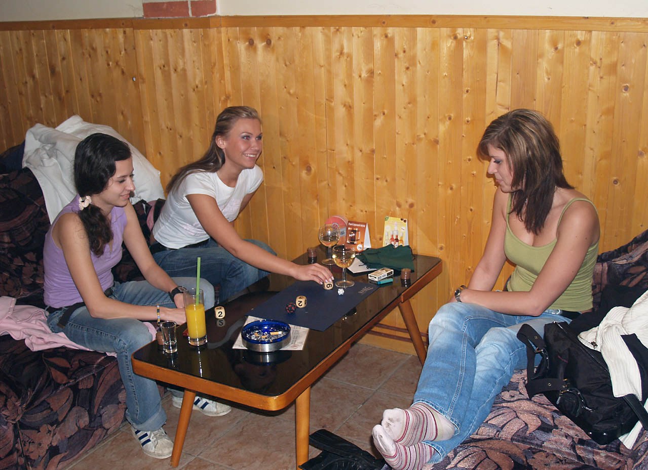 Барышни развлекаются в баре, две оказываются самыми смелыми и полностью раздеваются