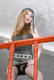 позирует на лестнице и демонстрирует свою естественную волосатую киску.
