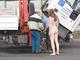 Бесстыдница не стесняясь прохожих позирует, принимая развратные позы