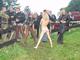 Голая красавица показывает себя среди толпы брутальных мужиков