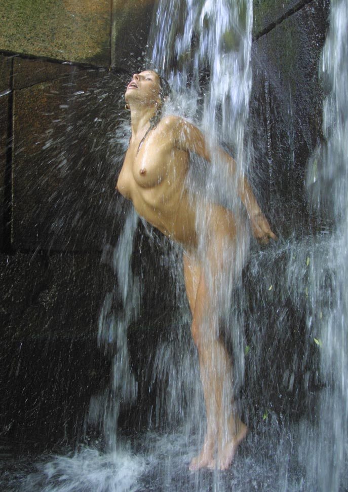 на природе как всегда очень красиво и естественно! только вот писю почему-то стесняется показывать...
