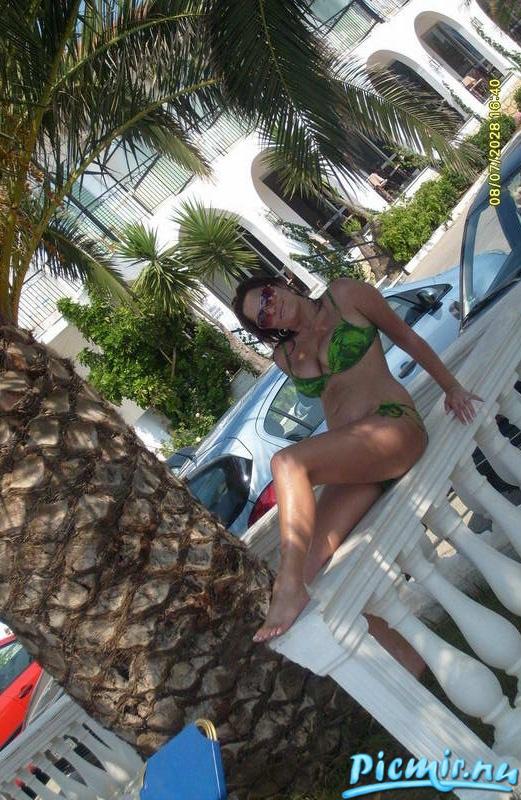 Женщина с очень приятными формами позирует во время отпуска.Грудь и фигурка восхищают.