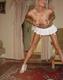 Блондинка крутит попой перед кам ерой в беленькой мини юбочке.