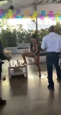 Охренеть. Во даёт. Интересно кончила или нет? Мужик в чёрном сзади смотрит как заворожённый не отрывая взгляда.