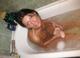 Миловидная женщина в ванной играет с игрушкой приличного размера, а затем на кровати применяет ее по назначению.