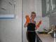 Готовит,моет посуду,пьёт пиво и позирует