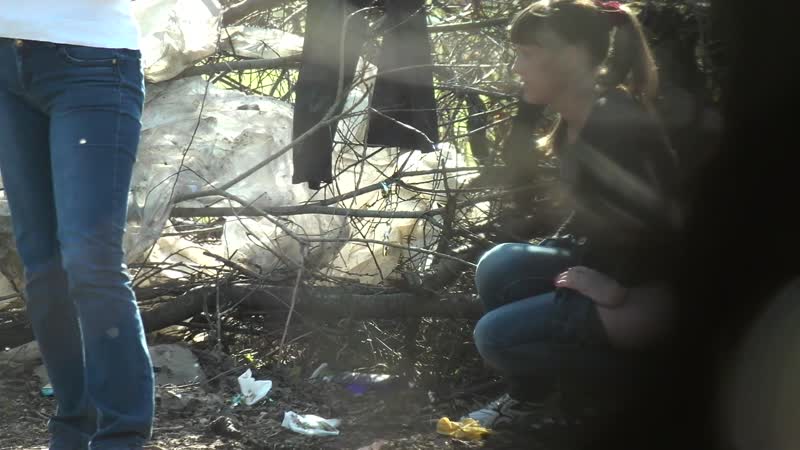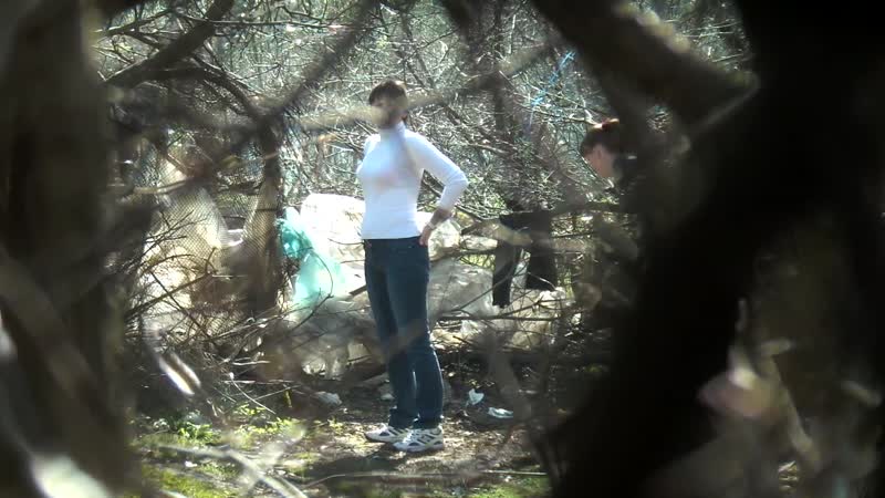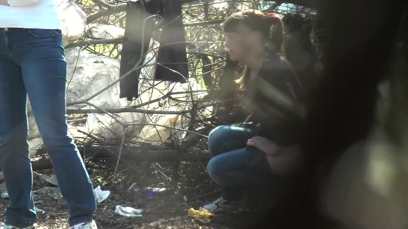 одна писает другая смотрит по сторонам, что бы подругу никто не увидел