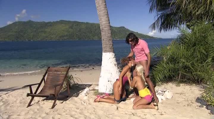 Здорово под пальмой самец с двумя тёлками оттянулся!