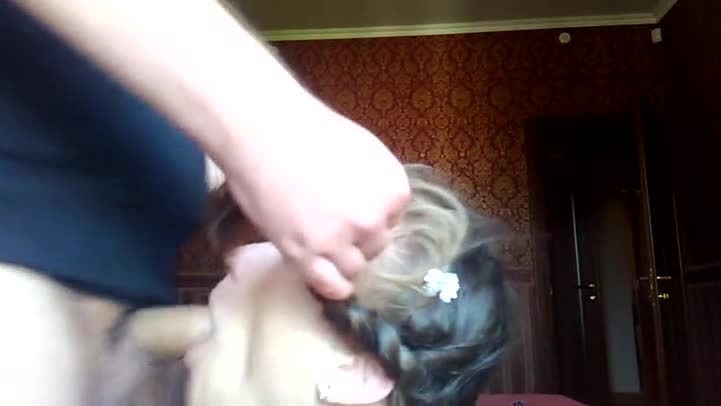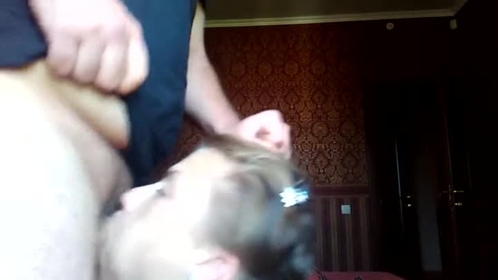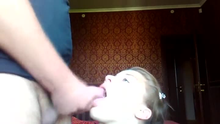 Мужик по полной использует свою голубоглазую подружку и взяв сучку за косички трахает ее в ротик и наполняет его спермой