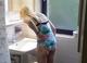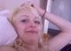 блондиночка с большими сосками и маленькой грудью в голубеньник трусиках показала себя дома в постели