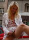 Блондиночка начала с парковки продолжила на улице сверкать своими прелестями
